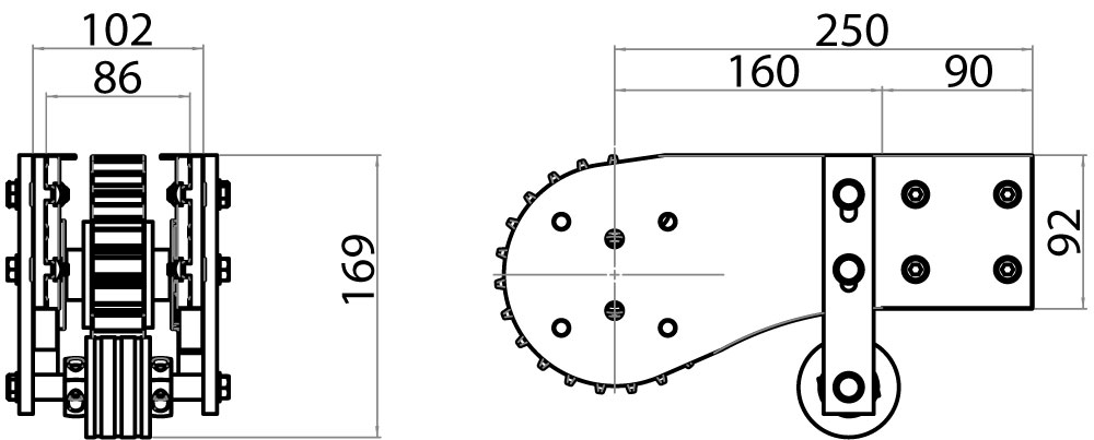 Conveyors head units with steel chain for 86/127/196 mm channel