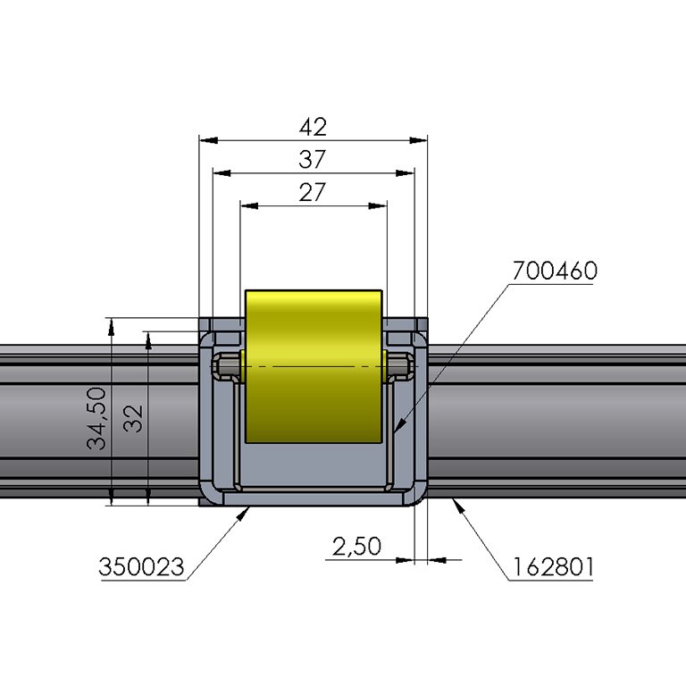 Guida a rulli e flange di connessione