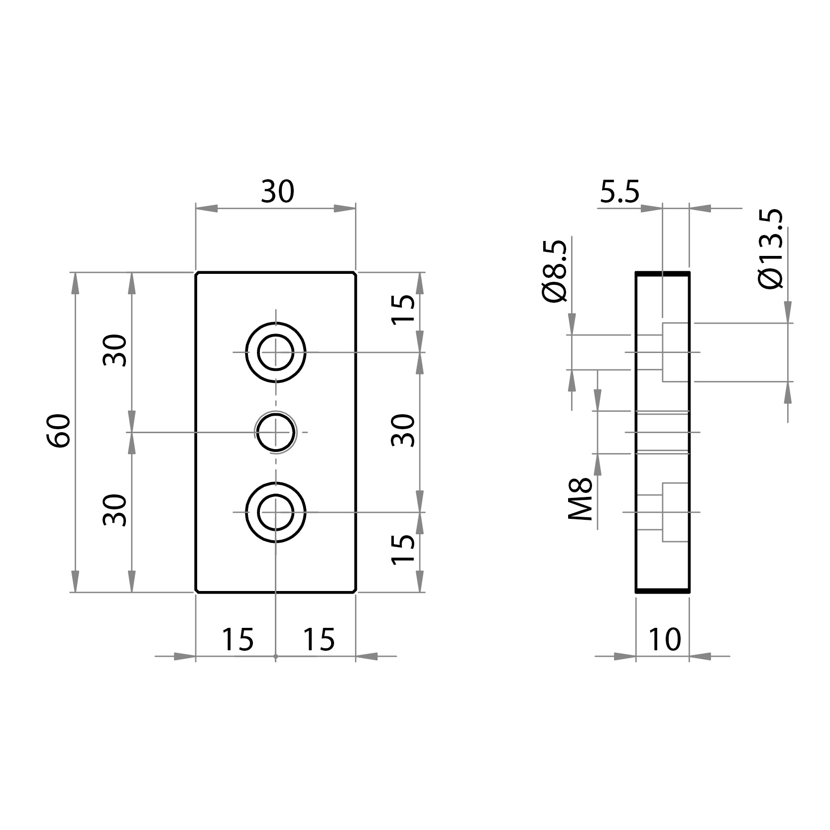 Fastening plate 30x60 for feet M8