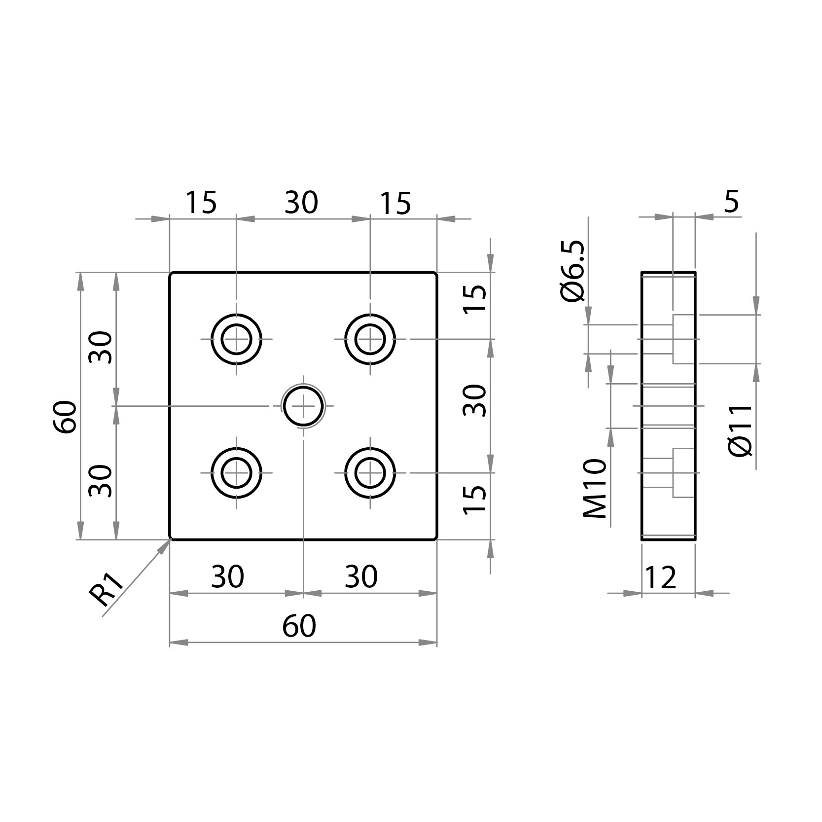 Befestigungsplatte für Füße M10 für das Profil 60x60