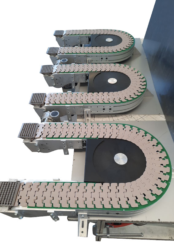 This is the keyword for Aluflex, our range of chain conveyors. Moving from pharmaceutical sector to food, through mechanical components, Aluflex is particularly suited for packaging transport. The extreme versatility of solutions allows an answer to any requirement of our customers. According to different applications and drawn paths, products characterized by different weights and dimensions can be carried at different speeds.