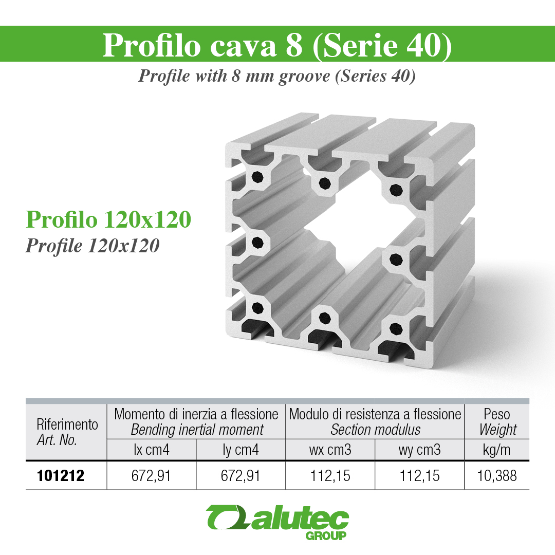 Profilo cava 8: 120x120 con scanalatura da 8 mm (Serie 40)