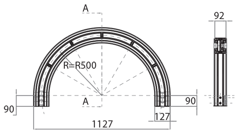 Curva 180° a strisciamento (andata e ritorno) r medio=500 mm
