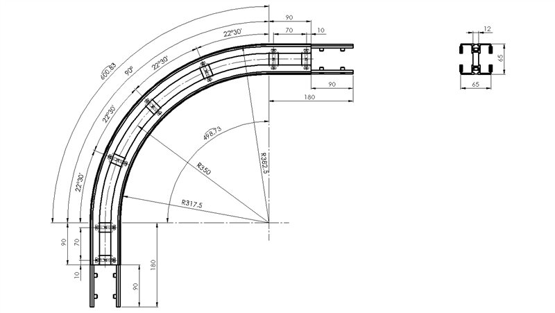 Curva 90° a strisciamento (andata e ritorno) raggio medio 350 mm