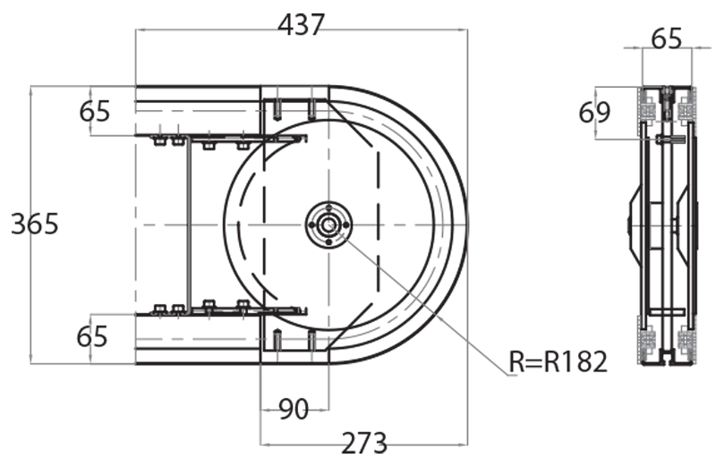 Guida a rulli e flange di connessione