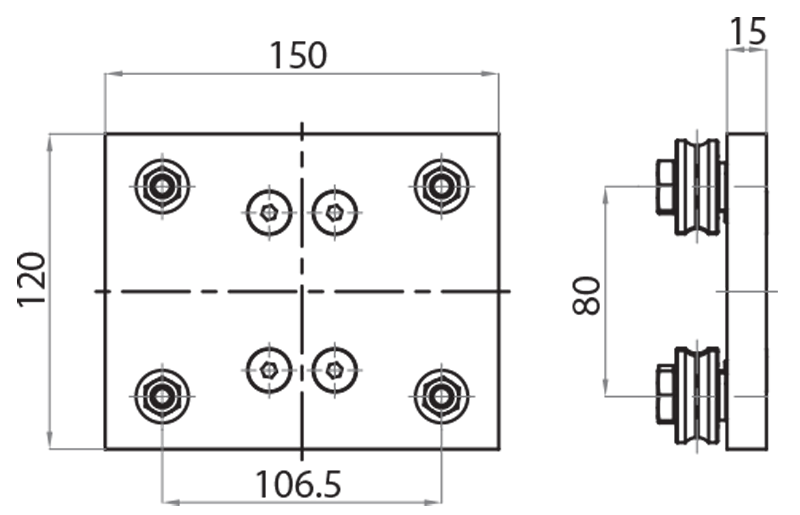 Guida a rulli e flange di connessione