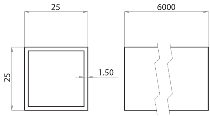 Tubo inox 25x25 mm sp.1,5 mm