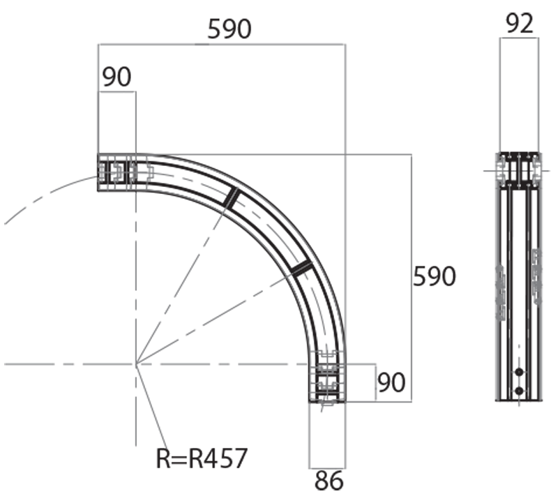 Rücklauf 90° Gleitkurve mittlerer Radius 457 mm