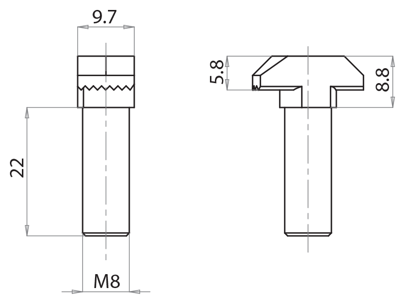 | 202008 | verzinkter Stahl | M8x20 | für 10mm Hohl | 0,013 |