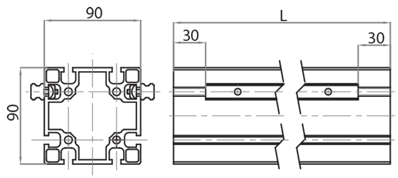Profil 90x90 mit Linearführung für Kugelumlauf-Laufwagen