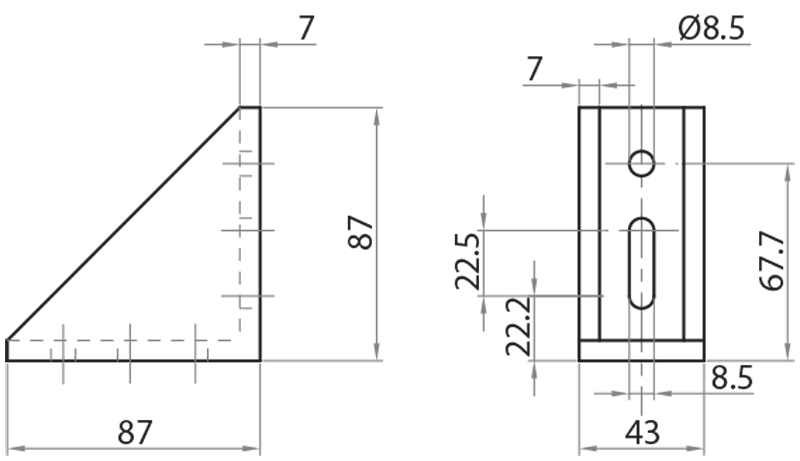 Angolare di fissaggio 43x87 - 2 sponde