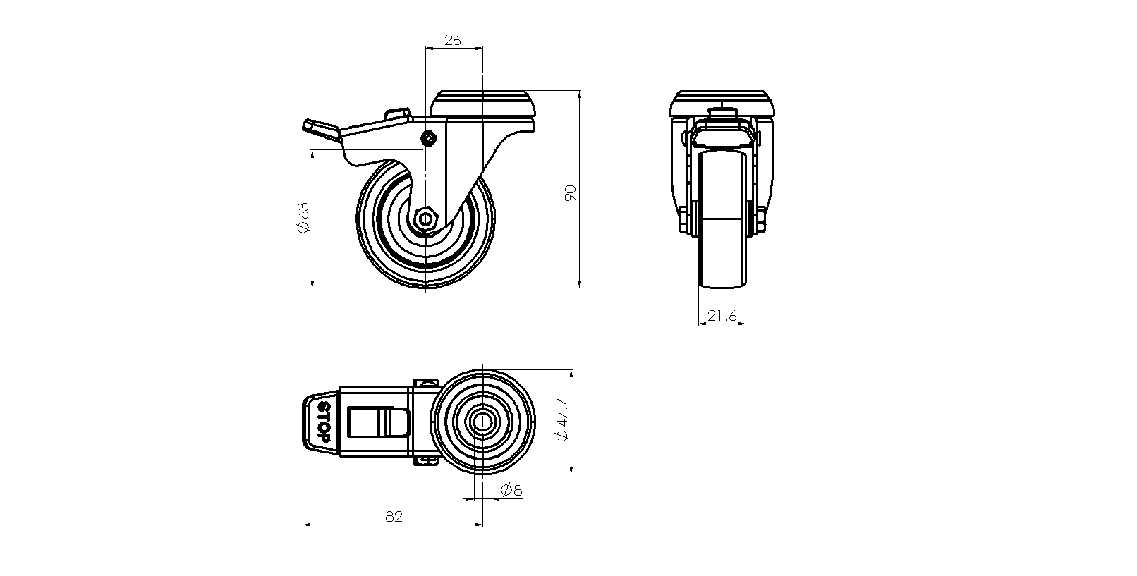 Ruota girevole Ø63 mm cromata con freno